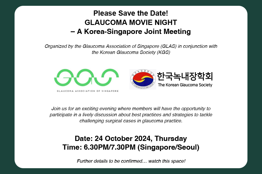 싱가포르 녹내장 학회와 합동으로 녹내장 수술 관련 동영상 컨퍼런스가 예정되어 있어 안내드립니다.